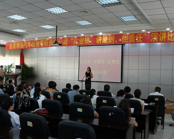 在比賽中,參賽選手緊緊圍繞公司成立五年多來的發(fā)展歷程和重大成就,結(jié)合本職工作,贊美身邊的先進(jìn)典型和感人事跡,頌揚(yáng)了婁運(yùn)人“比業(yè)績(jī)、講原則、擔(dān)責(zé)任”的工作作風(fēng),暢談在工作中如何愛崗敬業(yè)、勇?lián)?zé)任,爭(zhēng)創(chuàng)佳績(jī)。富有感染力和說服力的演講,充分展示了婁底湘運(yùn)人積極向上、奮勇爭(zhēng)先、無私奉獻(xiàn)的良好精神風(fēng)貌,贏得了現(xiàn)場(chǎng)觀眾的共鳴和熱烈掌聲。